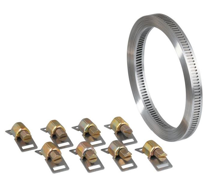 Collier de serrage à bande largeur 8m/m en Acier zingué pour plus de solidité.
