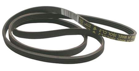 La longueur, exprimée en millimètres, correspond à la longueur totale de la courroie dépliée. Le type est caractérisé par une ou deux lettres, J, PJ pour les courroies de lave -linge. On trouve les lettres EL, MA, MAEL lorsque la courroie est élastique. Le nombre de dents : Noté après le type, il correspond au nombre de sommets. Sur la courroie on peut lire les données suivantes : EL 1207 J4 EL = courroie élastique, 1207 = sa longueur est de 1207 m/m, J4 = courroie de type J et dotée de 4 dents.