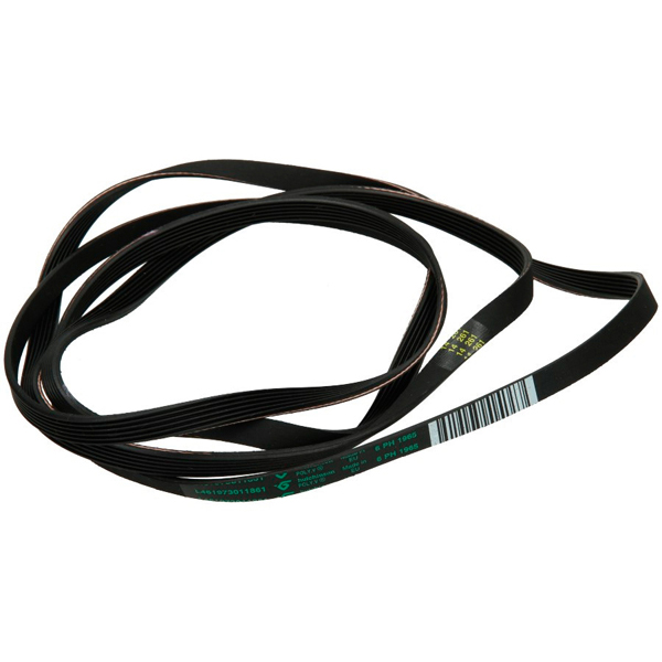 La longueur : Exprimée en millimètres, correspond à la longueur totale de la courroie dépliée. Le type : Il est caractérisé par la lettre H pour les courroies de sèche-linge. Le nombre de dents : Noté après le type, il correspond au nombre de sommets ou dents. Par exemple, sur une courroie on peut lire les données suivantes : 1965 H6 1965 = sa longueur est de 1965 m/m, H6 = de type H et dotée de 6 dents.