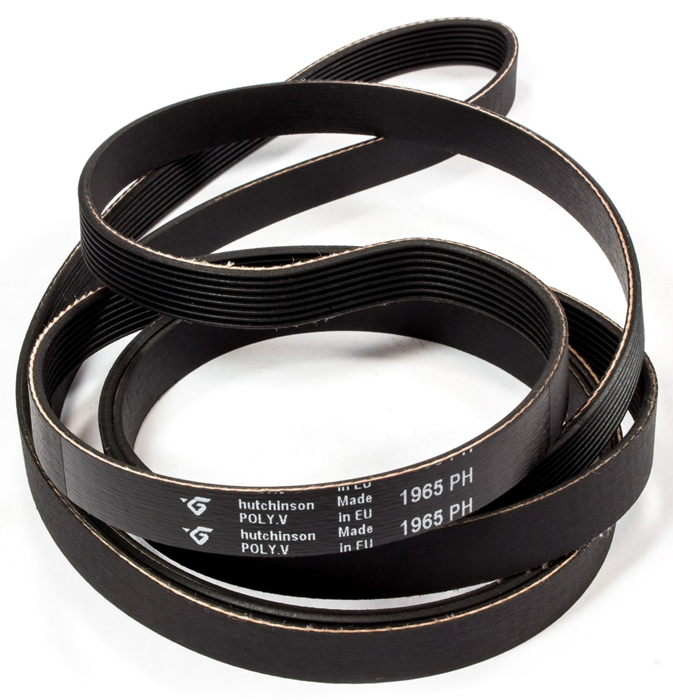 La longueur : Exprimée en millimètres, correspond à la longueur totale de la courroie dépliée. Le type : Il est caractérisé par la lettre H pour les courroies de sèche-linge. Le nombre de dents : Noté après le type, il correspond au nombre de sommets ou dents. Par exemple, sur une courroie on peut lire les données suivantes : 1965 H8 1965 = sa longueur est de 1965 m/m, H8 = de type H et dotée de 8 dents.