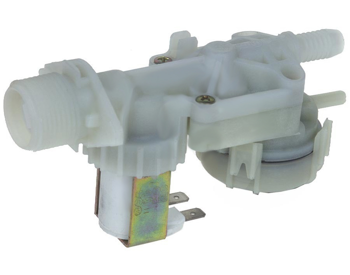C'est la pièce qui permet de contrôler l’arrivée d’eau entrant dans la cuve d’un lave-linge. L’électrovanne est dotée de bobines magnétiques qui, lorsque le cycle de lavage est lancé, permettent à l’eau d'arriver dans la cuve. Lorsque le niveau d’eau est atteint dans la cuve, un capteur envoi un signal à l’électrovanne et coupe l'alimentation électrique.