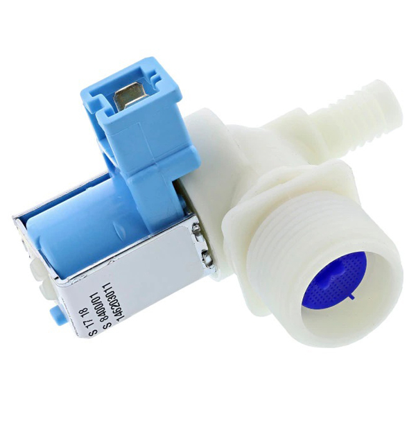 Cette électrovalve est située à l'arrière de votre lave-linge, au niveau de l'arrivée d'eau. C'est la pièce qui permet de contrôler l’arrivée d’eau entrant dans la cuve d’un lave-linge. L’électrovanne est dotée de bobines magnétiques qui, lorsque le cycle de lavage est lancé, permettent à l’eau d'arriver dans la cuve. Lorsque le niveau d’eau est atteint dans la cuve, un capteur envoi un signal à l’électrovanne et coupe l'alimentation électrique. Si une bobine est défectueuse ou si le pointeau se repositionne mal, il vous faudra remplacer cette pièce qui reste facile à démonter.
