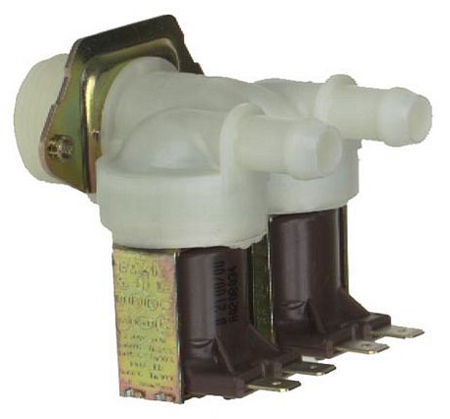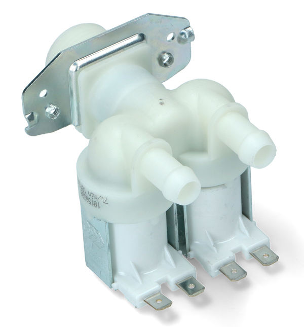 C'est la pièce qui permet de contrôler l’arrivée d’eau entrant dans la cuve d’un lave-linge. L’électrovanne est dotée de bobines magnétiques qui, lorsque le cycle de lavage est lancé, permettent à l’eau d'arriver dans la cuve. Lorsque le niveau d’eau est atteint dans la cuve, un capteur envoi un signal à l’électrovanne et coupe l'alimentation électrique.