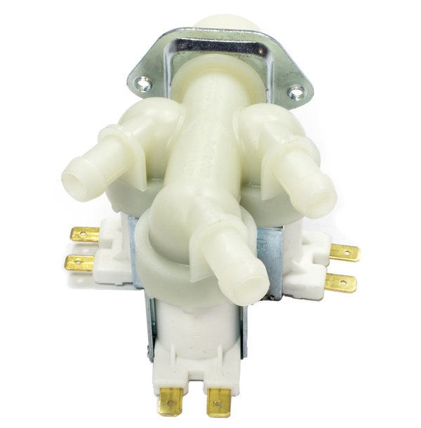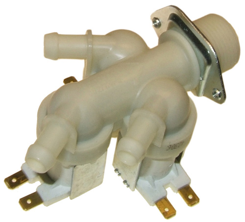 C'est la pièce qui permet de contrôler l’arrivée d’eau entrant dans la cuve d’un lave-linge. L’électrovanne est dotée de bobines magnétiques qui, lorsque le cycle de lavage est lancé, permettent à l’eau d'arriver dans la cuve. Lorsque le niveau d’eau est atteint dans la cuve, un capteur envoi un signal à l’électrovanne et coupe l'alimentation électrique.