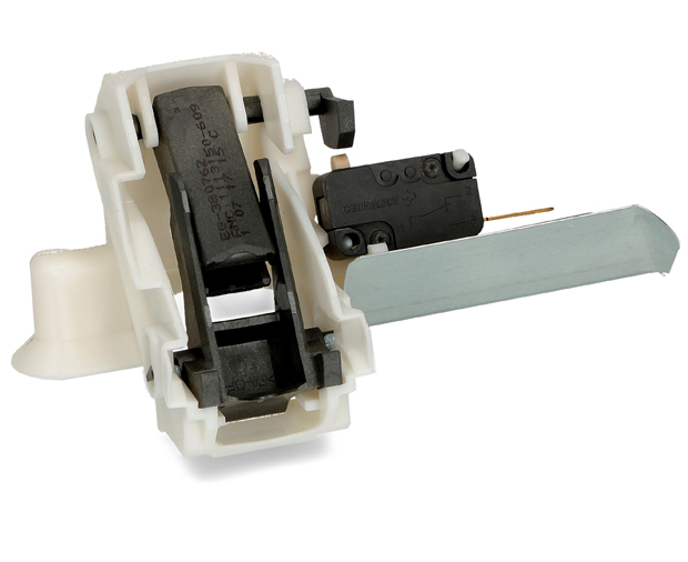 Comme son nom l'indique, la sécurité de porte est une pièce de sécurité. Le fonctionnement du verrou de porte de lave-vaisselle est très simple. C’est le crochet situé sur la porte qui en s'insérant dans la sécurité de porte actionne un contact entre deux bornes du verrouillage de porte.
