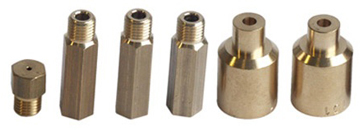 Les injecteurs de gaz sont de petites pièces généralement en laiton ou cuivre de la forme d’une vis 6 pans (6 ou 7 m/m) et percées en leur milieu d'un trou calibré correspondant à la puissance du brûleur.