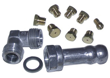 Les injecteurs de gaz sont de petites pièces généralement en laiton ou cuivre de la forme d’une vis 6 pans (6 ou 7 m/m) et percées en leur milieu d'un trou calibré correspondant à la puissance du brûleur.