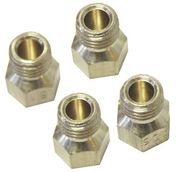 Les injecteurs de gaz sont de petites pièces généralement en laiton ou cuivre de la forme d’une vis 6 pans (6 ou 7 m/m) et percées en leur milieu d'un trou calibré correspondant à la puissance du brûleur.