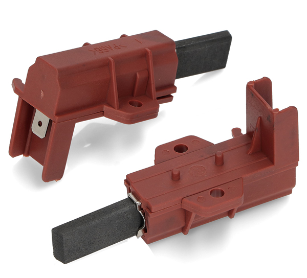 Le charbon moteur, aussi appelé balai est une pièce qui sert à alimenter en courant électrique le rotor qui est la partie rotative du moteur. Cette alimentation s'effectue par à un frottement sur les contacts en rotation. Les charbons moteur fournissent l’énergie au rotor du moteur de votre lave-linge afin qu’il puisse fonctionner correctement. Ils sont montés sur ressort afin de garantir un bon contact même lorsqu'ils raccourcissent car le frottement des charbons sur le rotor provoque l'usure de ces derniers. Les charbons moteur sont livrés par jeux car il est impératif de remplacer les 2 charbons.