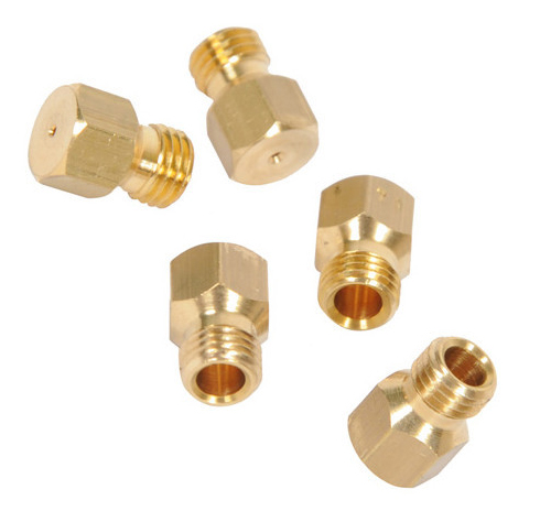 Les injecteurs de gaz sont de petites pièces généralement en laiton ou cuivre de la forme d’une vis 6 pans (6 ou 7 m/m) et percées en leur milieu d'un trou calibré correspondant à la puissance du brûleur.
