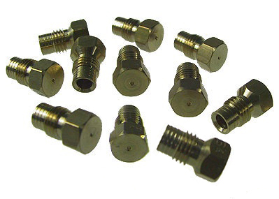 Les injecteurs de gaz sont de petites pièces généralement en laiton ou cuivre de la forme d’une vis 6 pans (6 ou 7 m/m) et percées en leur milieu d'un trou calibré correspondant à la puissance du brûleur.