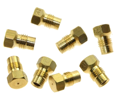 Les injecteurs de gaz sont de petites pièces généralement en laiton ou cuivre de la forme d’une vis 6 pans (6 ou 7 m/m) et percées en leur milieu d'un trou calibré correspondant à la puissance du brûleur.