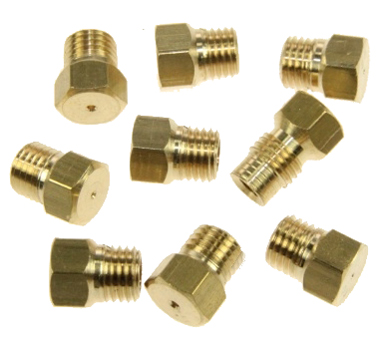 Les injecteurs de gaz sont de petites pièces généralement en laiton ou cuivre de la forme d’une vis 6 pans (6 ou 7 m/m) et percées en leur milieu d'un trou calibré correspondant à la puissance du brûleur.