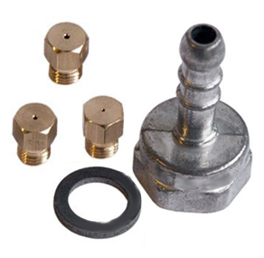 Les injecteurs de gaz sont de petites pièces généralement en laiton ou cuivre de la forme d’une vis 6 pans (6 ou 7 m/m) et percées en leur milieu d'un trou calibré correspondant à la puissance du brûleur.