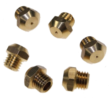 Les injecteurs de gaz sont de petites pièces généralement en laiton ou cuivre de la forme d’une vis 6 pans (6 ou 7 m/m) et percées en leur milieu d'un trou calibré correspondant à la puissance du brûleur.