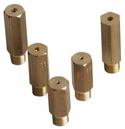 Les injecteurs de gaz sont de petites pièces généralement en laiton ou cuivre de la forme d’une vis 6 pans (6 ou 7 m/m) et percées en leur milieu d'un trou calibré correspondant à la puissance du brûleur.
