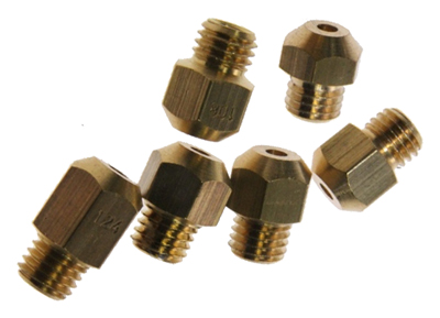 Les injecteurs de gaz sont de petites pièces généralement en laiton ou cuivre de la forme d’une vis 6 pans (6 ou 7 m/m) et percées en leur milieu d'un trou calibré correspondant à la puissance du brûleur.