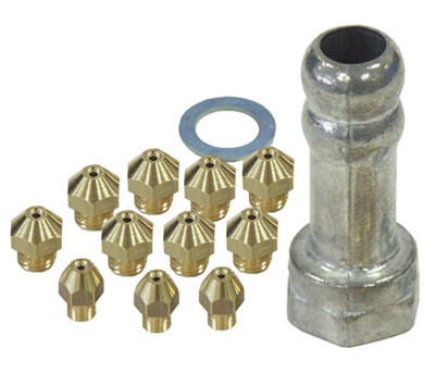 Les injecteurs de gaz sont de petites pièces généralement en laiton ou cuivre de la forme d’une vis 6 pans (6 ou 7 m/m) et percées en leur milieu d'un trou calibré correspondant à la puissance du brûleur.