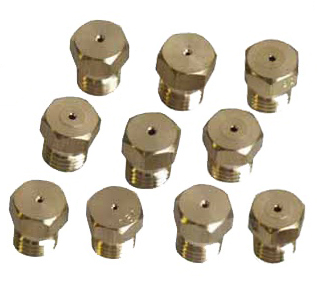 Les injecteurs de gaz sont de petites pièces généralement en laiton ou cuivre de la forme d’une vis 6 pans (6 ou 7 m/m) et percées en leur milieu d'un trou calibré correspondant à la puissance du brûleur.