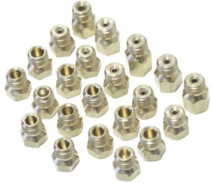 Les injecteurs de gaz sont de petites pièces généralement en laiton ou cuivre de la forme d’une vis 6 pans (6 ou 7 m/m) et percées en leur milieu d'un trou calibré correspondant à la puissance du brûleur.