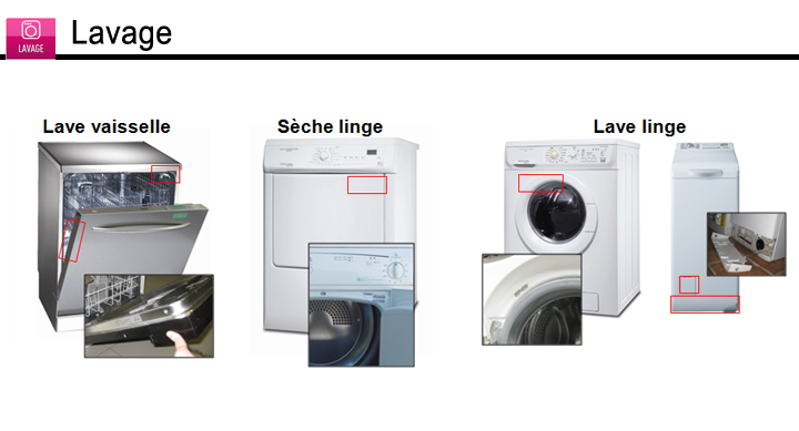- Lave-linge hublot ou chargement frontal : Sur le Cerclage du hublot, sur la trappe de la pompe de vidange ou à l'arrière de l'appareil.