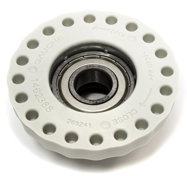 Les paliers assurent le maintien et la rotation du tambour. Si vous constatez un bruit inhabituel pendant le lavage ou l'essorage, une fuite d'eau et de la rouille au niveau de l'axe, changez rapidement cette pièce détachée lave-linge. Il est conseillé de changer les 2 paliers du lave-linge. Si le palier de tambour ou roulement de tambour machine à laver est défectueux, cela génèrera un bruit mais surtout des fuites d'eau rouillée qui vont progressivement causer la destruction des roulements à billes et de l'axe de tambour de votre lave-linge.
