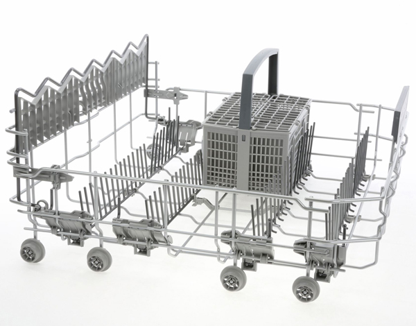 Panier inférieur complet avec panier à couverts, étagères et roulettes Longueur 520 m/m - Largeur 530 m/m