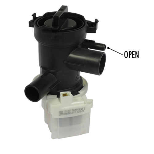 Pompe à eau machine à laver. La pompe de vidange est située en bas sur la face avant de votre machine à laver. Pour y acceder ouvrez la trappe de visite située sur la façade. Votre lave-linge ne vidange pas : Dévissez le bouchon de pompe et vérifiez si l'hélice de la pompe tourne librement et que le filtre n'est pas obstrué. Branchez la pompe directement sur le 220V afin de vérifier qu'elle tourne librement. Le cas échéant remplacez la pompe de vidange.