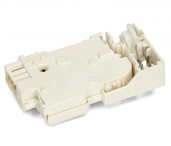 Comme son nom l'indique, la sécurité de porte est une pièce de sécurité. Le fonctionnement du verrou de porte est très simple. C’est le crochet situé sur le hublot qui en s'insérant dans la sécurité de porte actionne un contact entre deux bornes du verrouillage de porte. La sécurité de porte permet de maintenir verrouillé le hublot pendant le fonctionnement de la machine, rendant impossible l'ouverture de la porte.