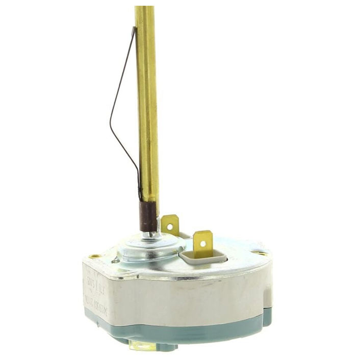 Le thermostat à canne est constitué d'une tige en métal qui se dilate en fonction de la température. Ce thermostat est composé d'un bilame, c'est-à-dire de deux lamelles de métaux différents donc le coefficient de dilatation est différent. La dilatation des éléments sensibles de la sonde entraîne l'ouverture des contacts situés dans la tête du thermostat. En cas de surchauffe, une sécurité à disque bimétallique dans la tête de thermostat ou une sécurité par ressort à mémoire de forme inséré dans la sonde provoque une ouverture des contacts empêchant toute alimentation de la résistance : il est alors nécessaire de réarmer manuellement le thermostat. Avant réarmement, il est vivement conseillé de vérifier le chauffe-eau et d'identifier la cause de la surchauffe.