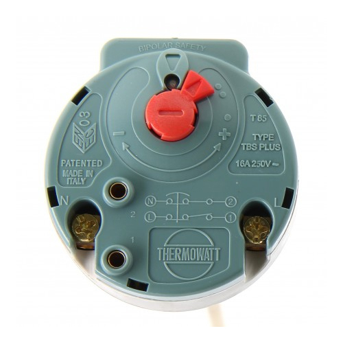 Le thermostat du chauffe-eau électrique permet de contrôler et de réguler la température de l'eau à l'intérieur de la cuve. Le thermostat pilote l'alimentation électrique de la résistance, la coupant lorsque l'eau au sein de la cuve a atteint la température souhaitée. On règle en général le thermostat pour que la température de l'eau à l'intérieur du chauffe-eau atteigne 60°C, notamment pour limiter les risques de brûlure, les risques d'entartrage du chauffe-eau et éviter le développement des bactéries. Auparavant, les ballons électriques pouvaient chauffer l'eau à une température supérieure à 80 degrés, mais ceci est désormais interdit, notamment afin d'éviter les risques de brulure et l'entartrage trop rapide du ballon d'eau chaude. Le thermostat peut être réglé à l'aide d'un tournevis ou d'une molette en façade du thermostat.