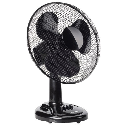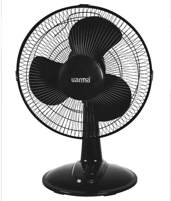 Ventilateur de table Puissance : 40 W Diamètre des pales : 35 cm 3 positions de vitesse Oscillation horizontale Inclinaison verticale de la tête Grille de protection démontable Très silencieux.